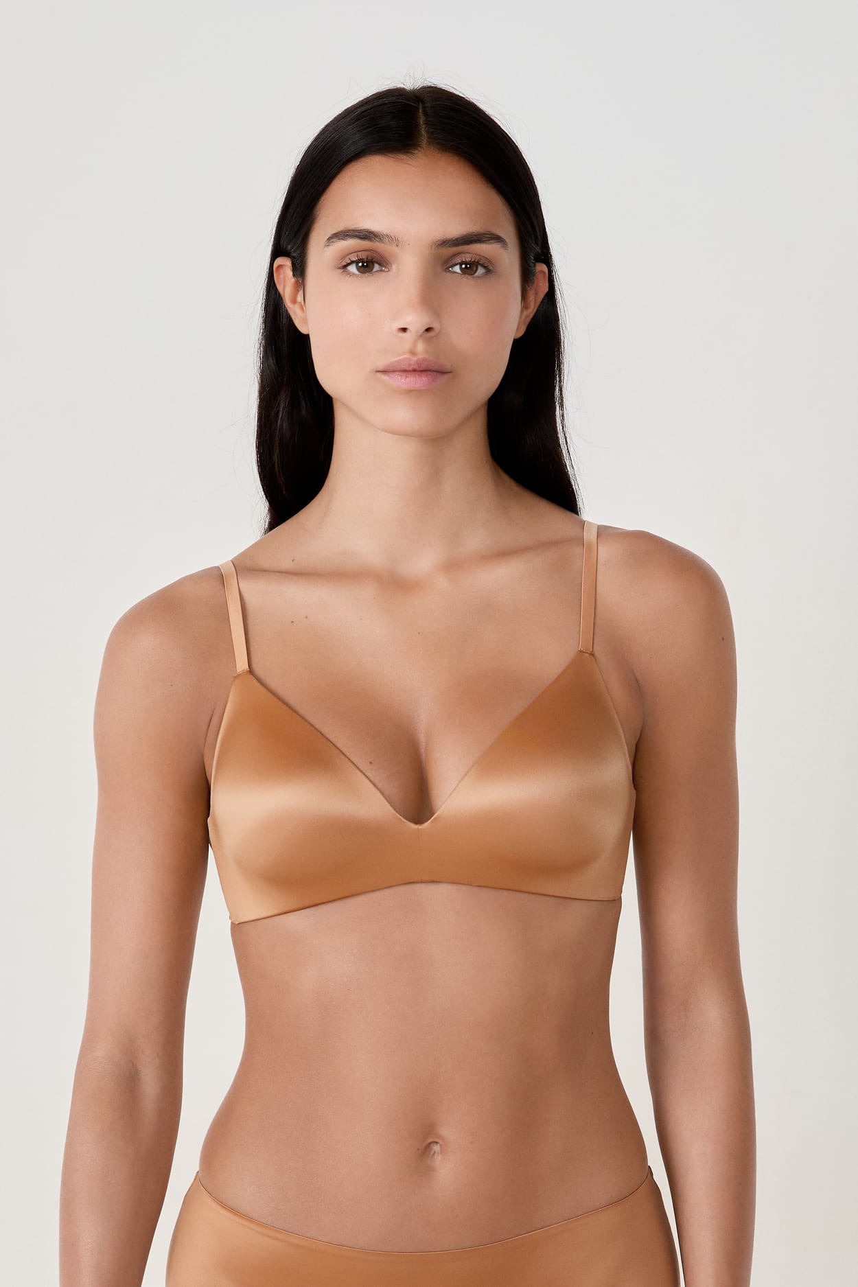 Conçu en microfibre délicatement satinée, ce soutien-gorge triangle sans armatures réinvente l’invisible avec un subtil ...