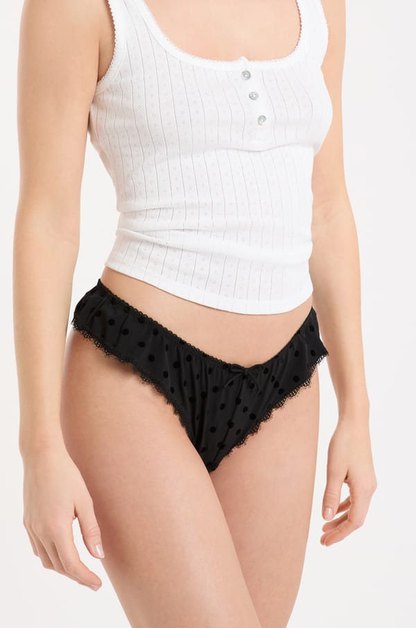 V-shape Microfiber Tanga with Lace Details;${refinementColor}
