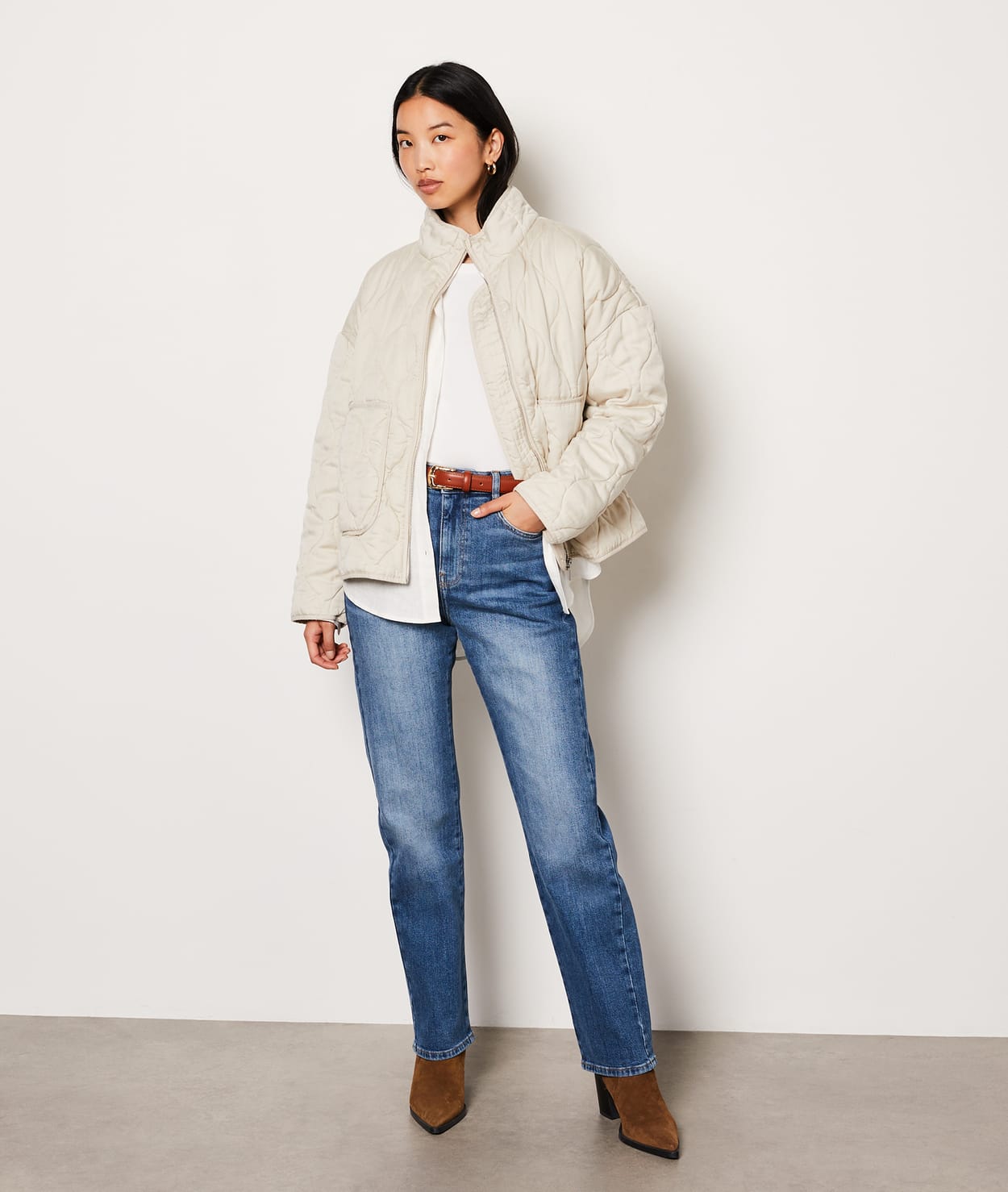 This winter, warm up your style with this ultra-trendy long-sleeved quilted puffer jacket....