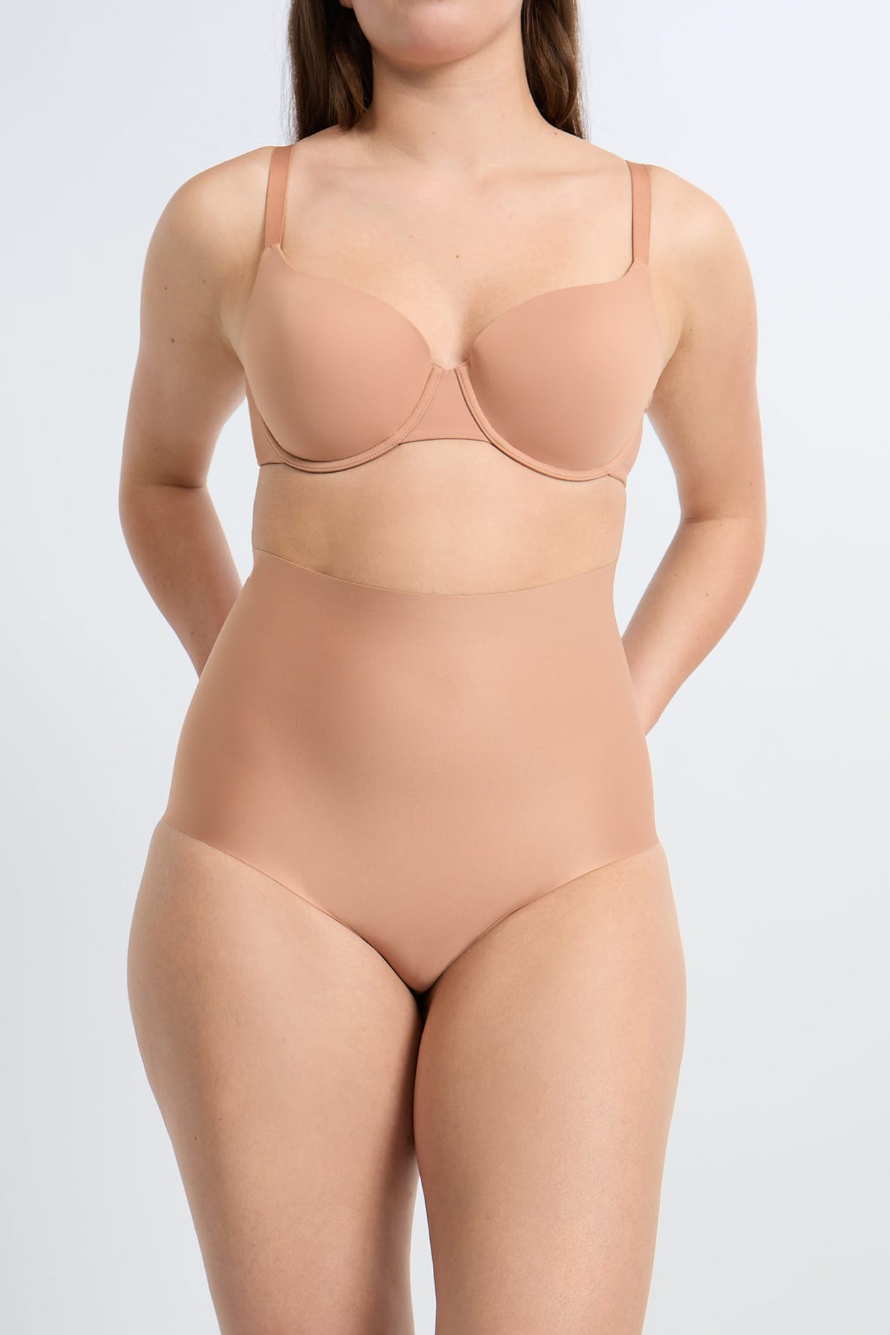 A perfect shape, gentle support: the stomach and waist are sculpted in this high-waist brief that offers strong support....