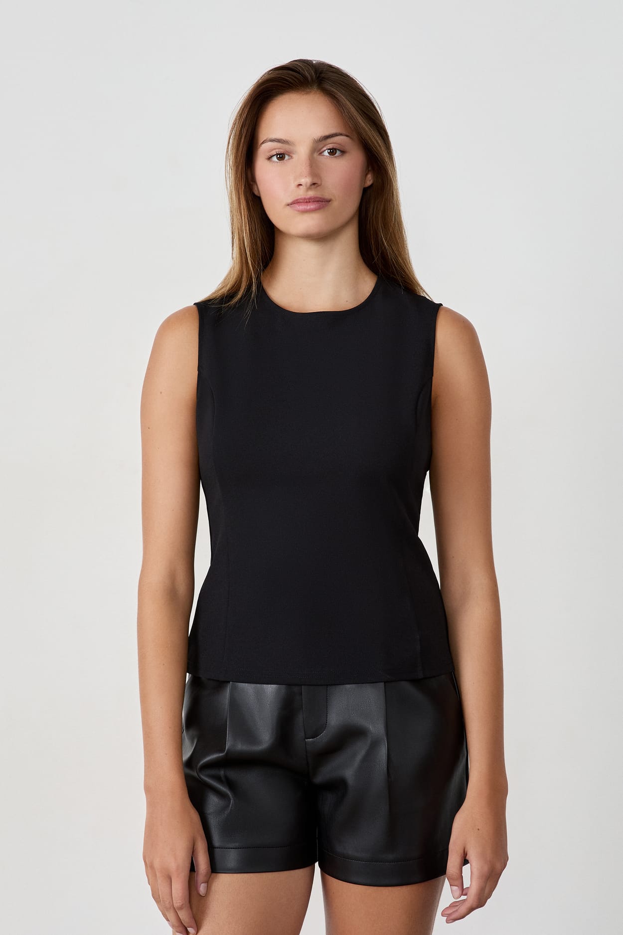 A wardrobe essential, this sleeveless t-shirt features a slightly fitted cut at the waist and structures the silhouette....