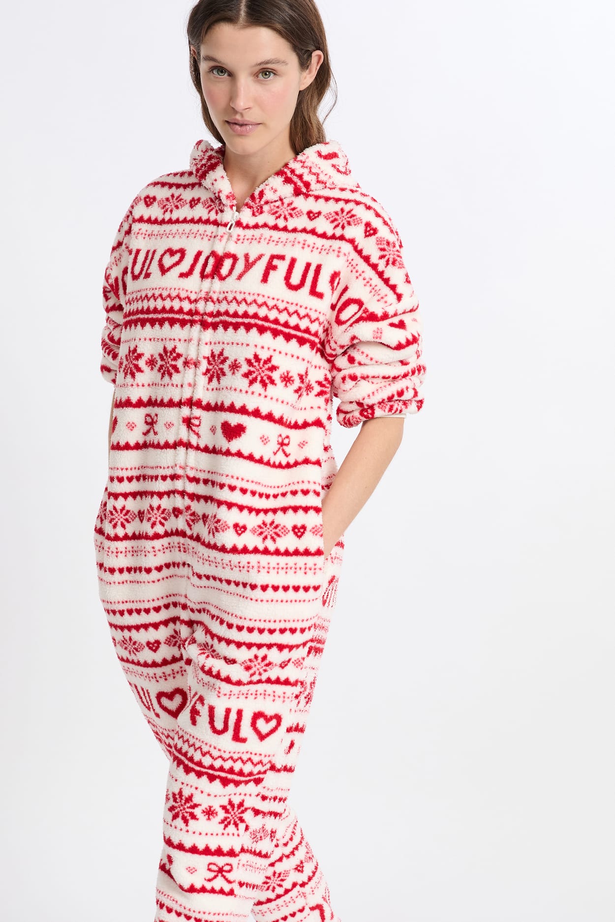 Made from soft fleece material, this jumpsuit is ideal for comforting and cosy moments. It features a Christmas print....