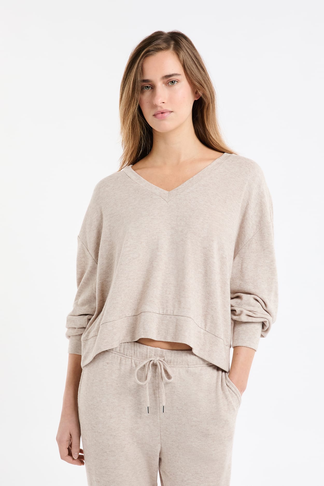 Confectionné en matière douce, ce sweatshirt manches longues est muni d'un col V. Il opte pour une coupe large. Idé...