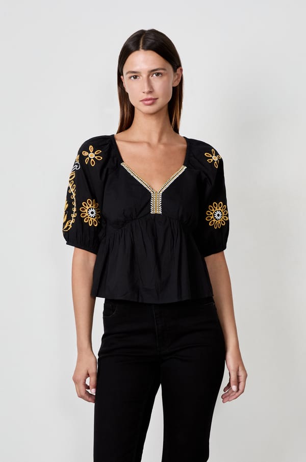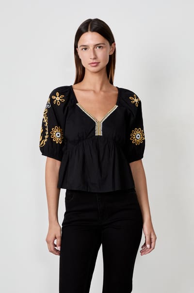 Short-sleeved cotton shirt with floral print;${refinementColor}