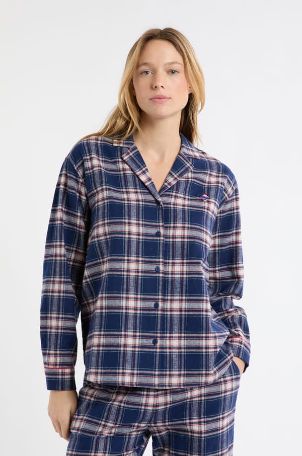 Checkered Cotton Pyjama Shirt;${refinementColor}