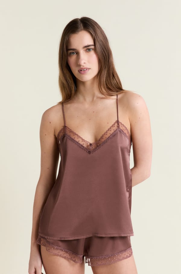 • Camisole in Microfibre and Lace with Integrated Bralette;${refinementColor}