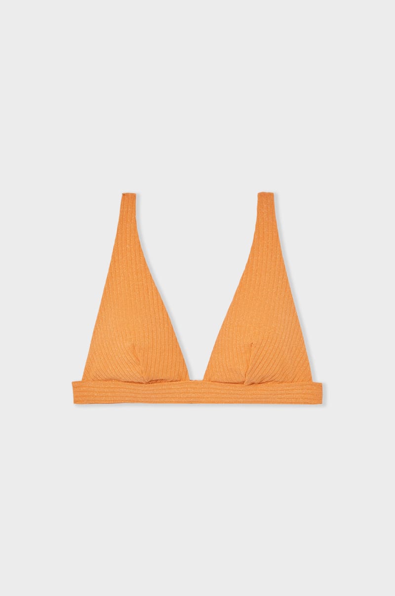 The bikini top triangle is reinvented with elegance. Its shape subtly reveals the neckline and makes it an essential pie...