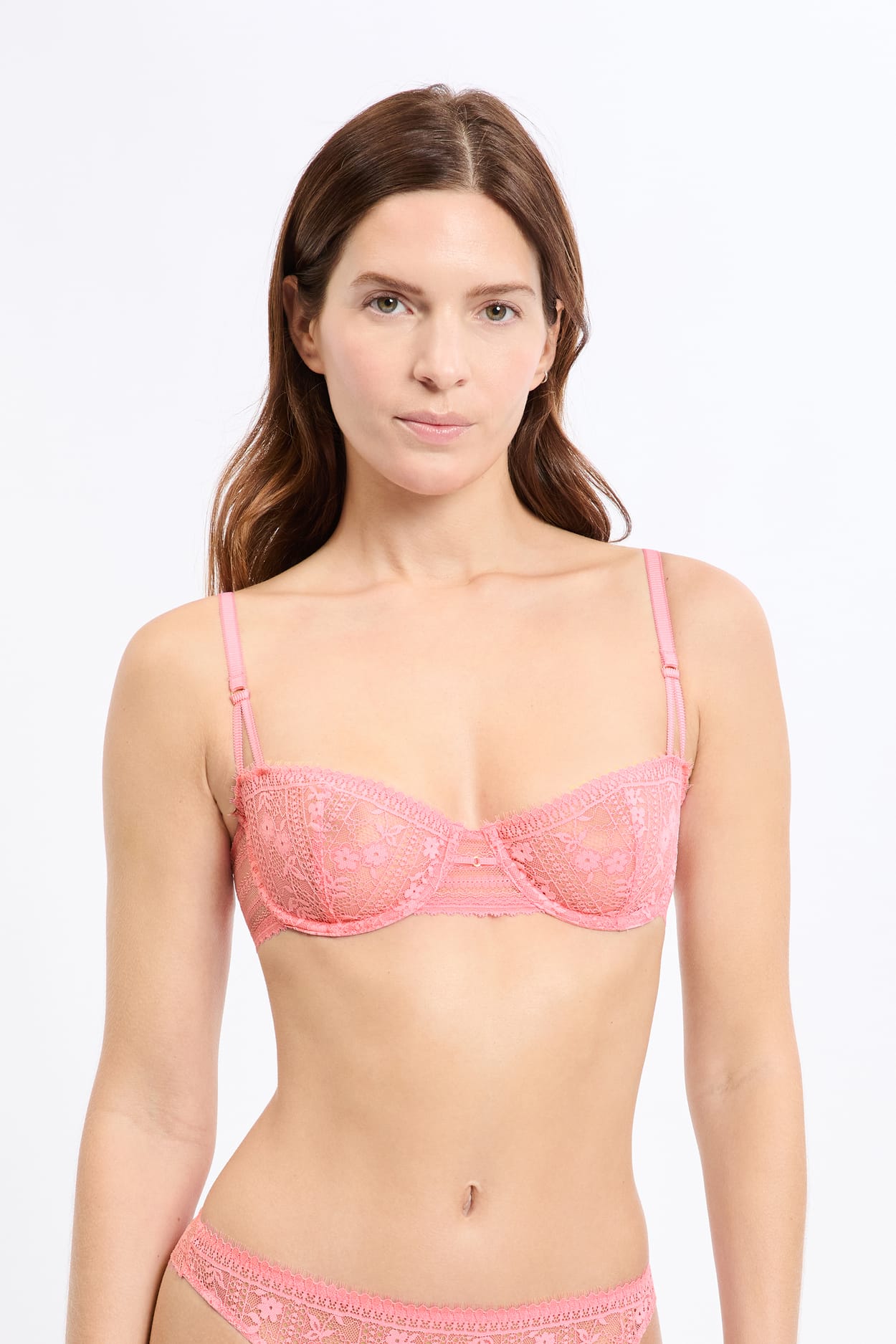 The new everyday lingerie, both sexy and comfortable. The eyelash effect lace of this bra combines floral motifs and gra...