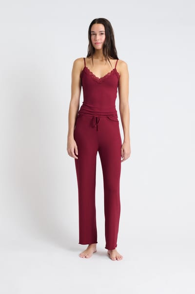 • Long ribbed cotton nightdress with thin straps;${refinementColor}