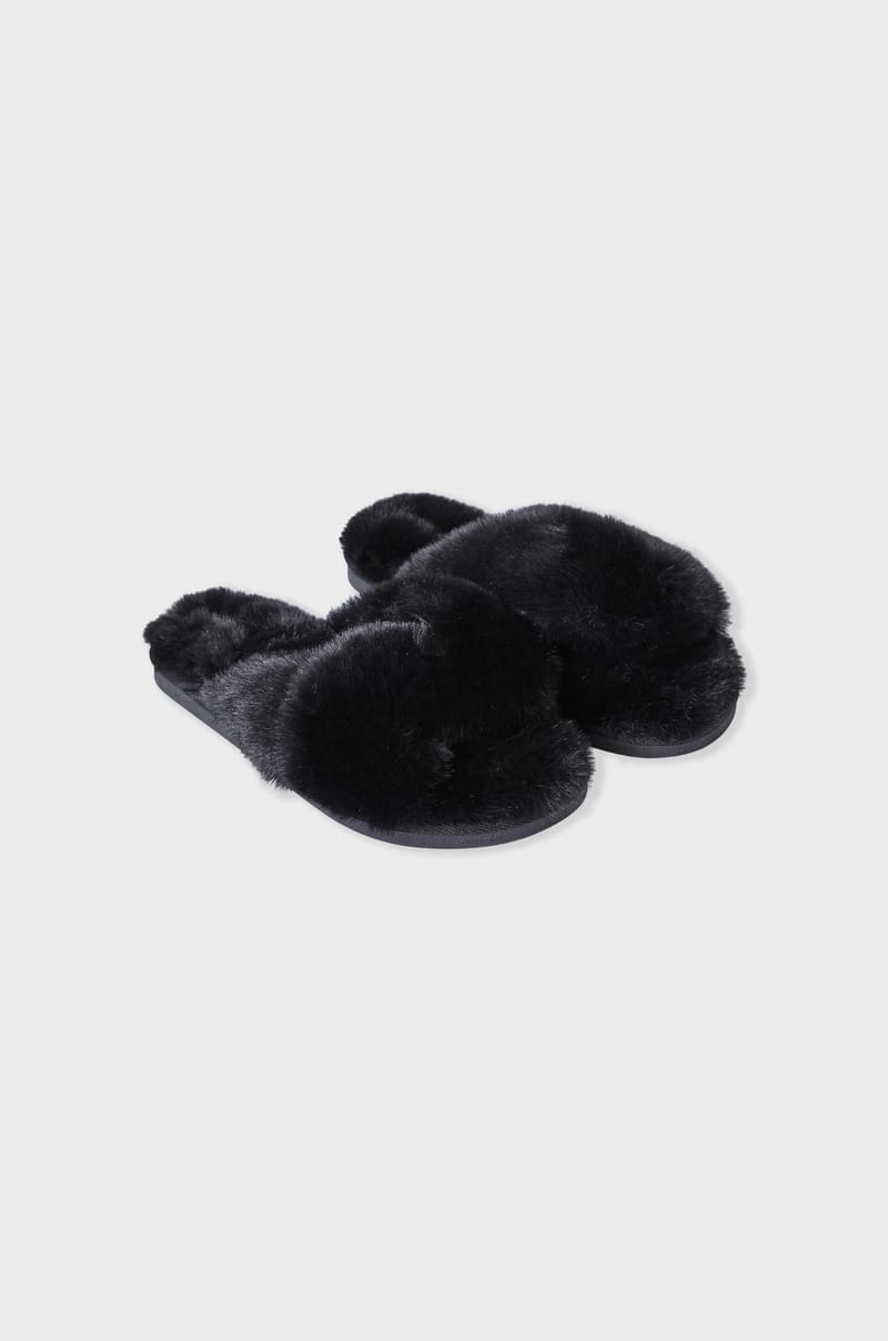 With their faux fur, these flip-flop slippers combine style and comfort....