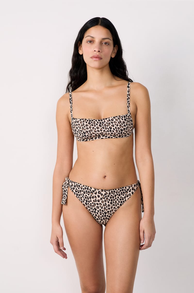 The trendiest print of the season features on this swimwear with a minimalist cut. Fitted with tie closures, it adjusts perfectly to the waist to enhance curves.