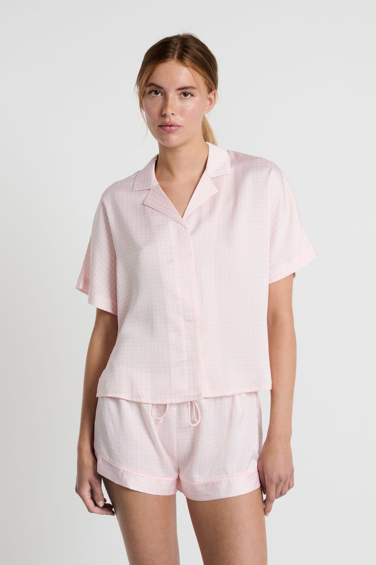 Printed short-sleeved pyjama shirt;${refinementColor}