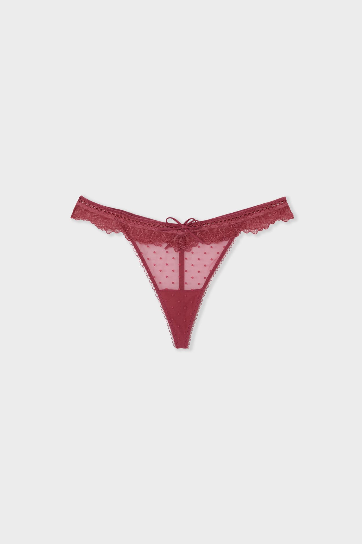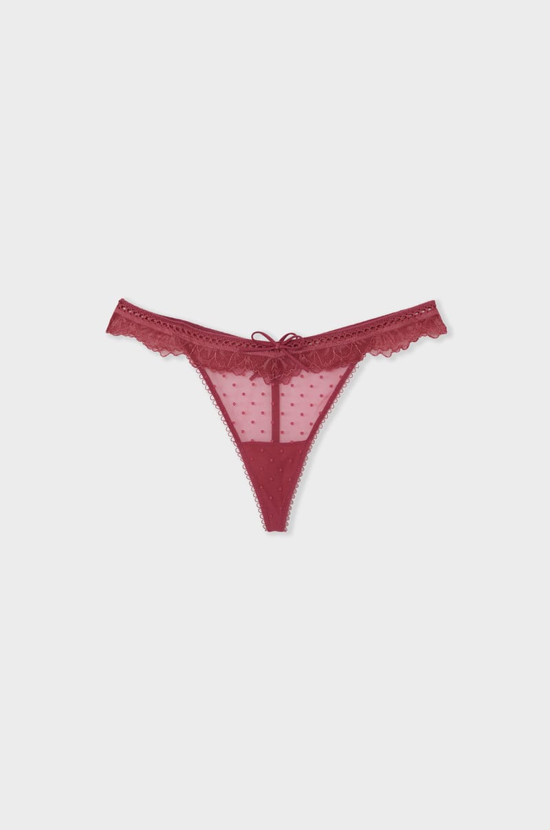 Sensual spotted tulle and lace play: succumb to the sexiness of this daring thong.Its play of transparency delicately re...