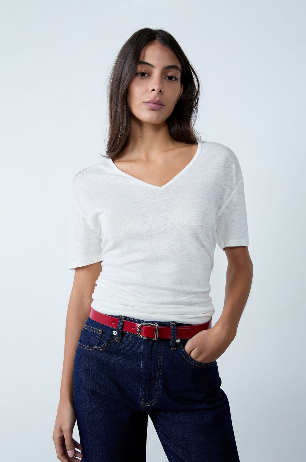 This tank top focuses on everyday comfort with its linen material. With its V-neck, it slightly reveals the skin. It...