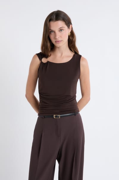 High Neck Sleeveless Iridescent Top;${refinementColor}