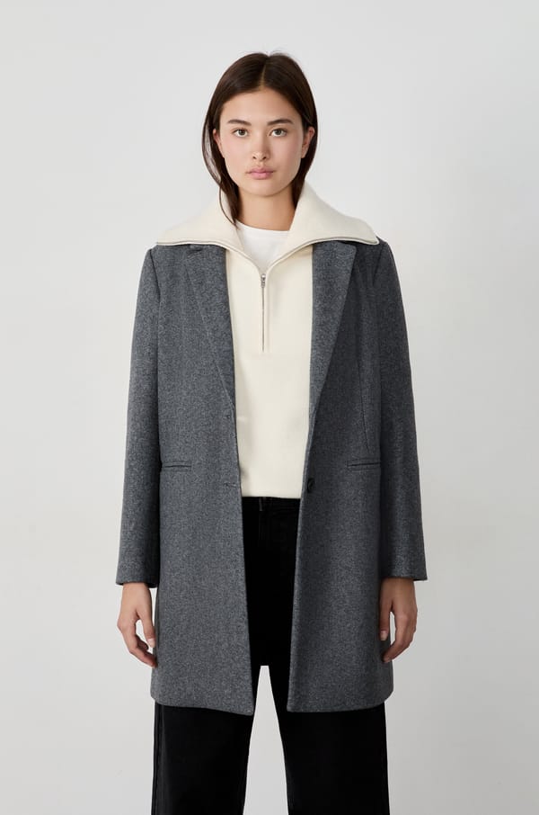 • Mid-length coat with wool and faux fur collar;${refinementColor}