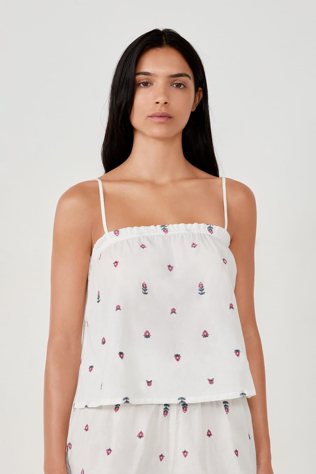 Idéal pour des nuits douces et légères, ce top de pyjama est confectionné en coton. Muni d'un imprimé fleuri et de brete...