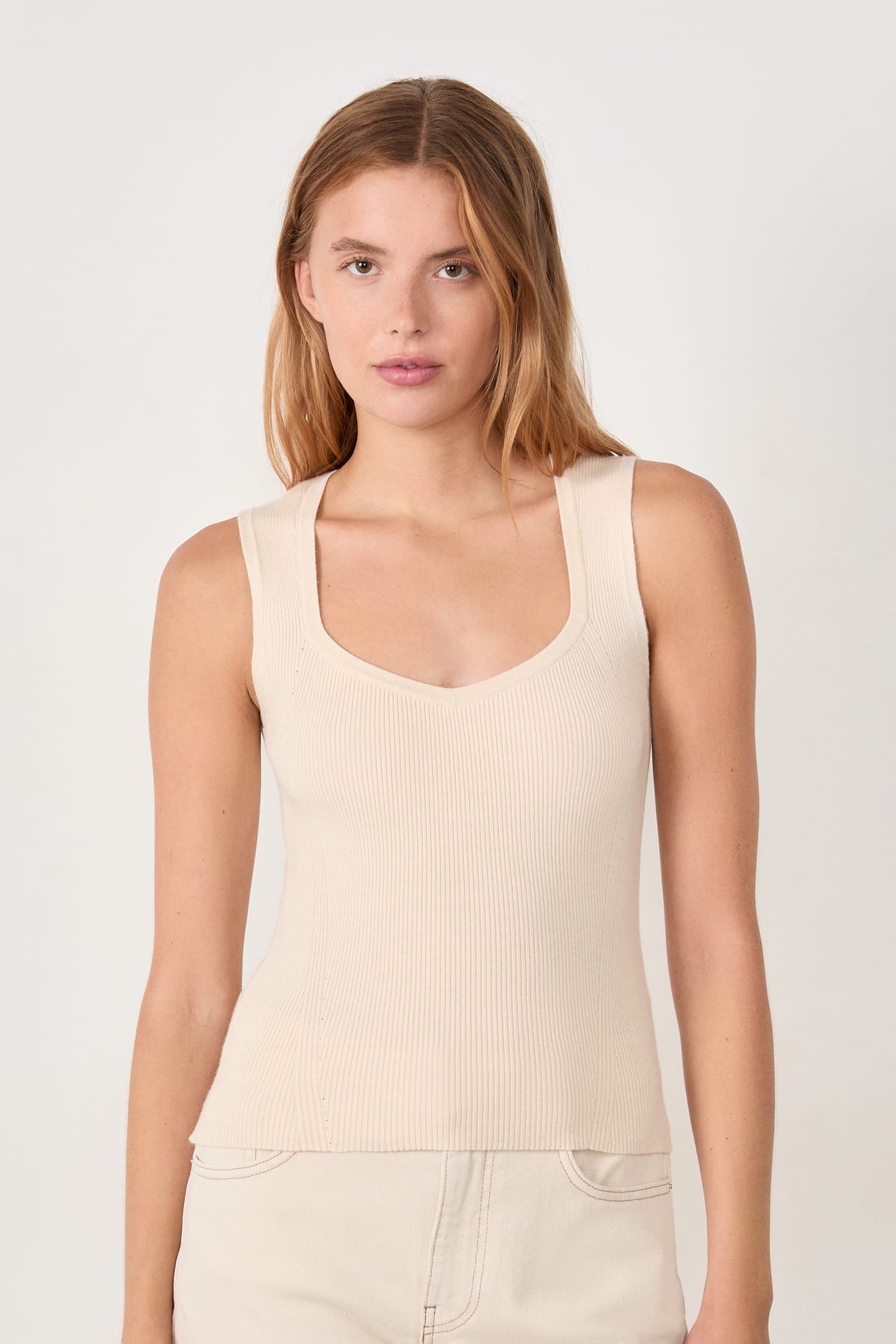 With its ribbed material, this tank top creates an elegant silhouette. From the V-neck to the wide straps, it establishe...