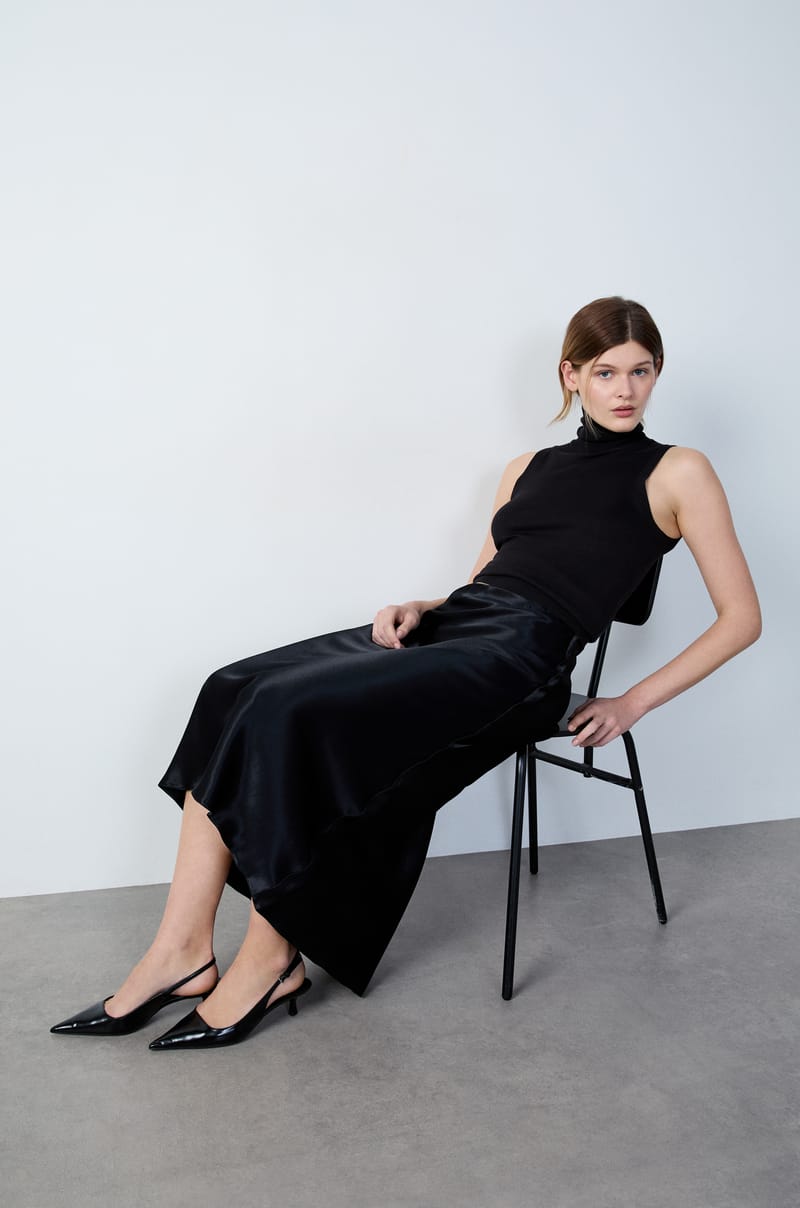Flowy and light, this long satin skirt is a must-have trendy piece for your wardrobe. ...