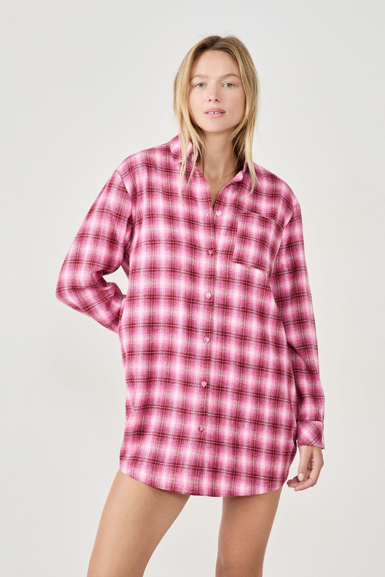 The pyjama shirt is dressed in checks. Made from cotton, it opts for a long cut....