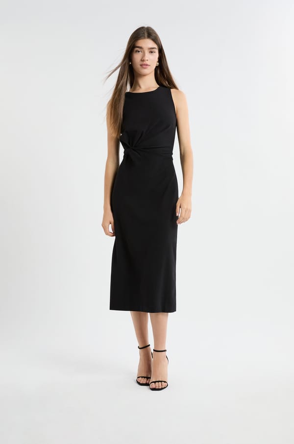Long-sleeved velvet dress with ring detail;${refinementColor}