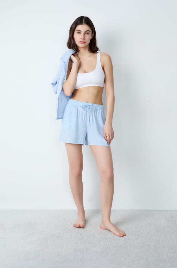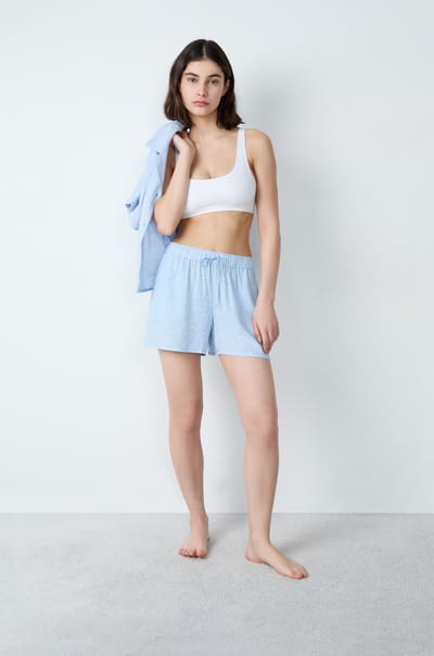 Pyjama Trousers with Elasticated Waist in Cotton;${refinementColor}