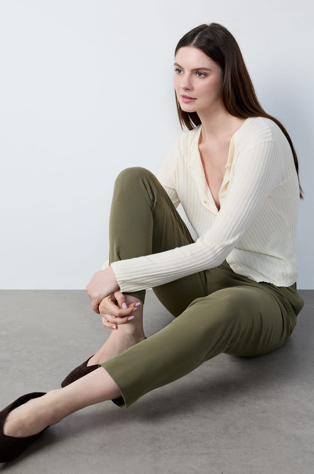 With its cigarette shape that enhances the silhouette, these trousers with ties at the waist will be the perfect ally fo...