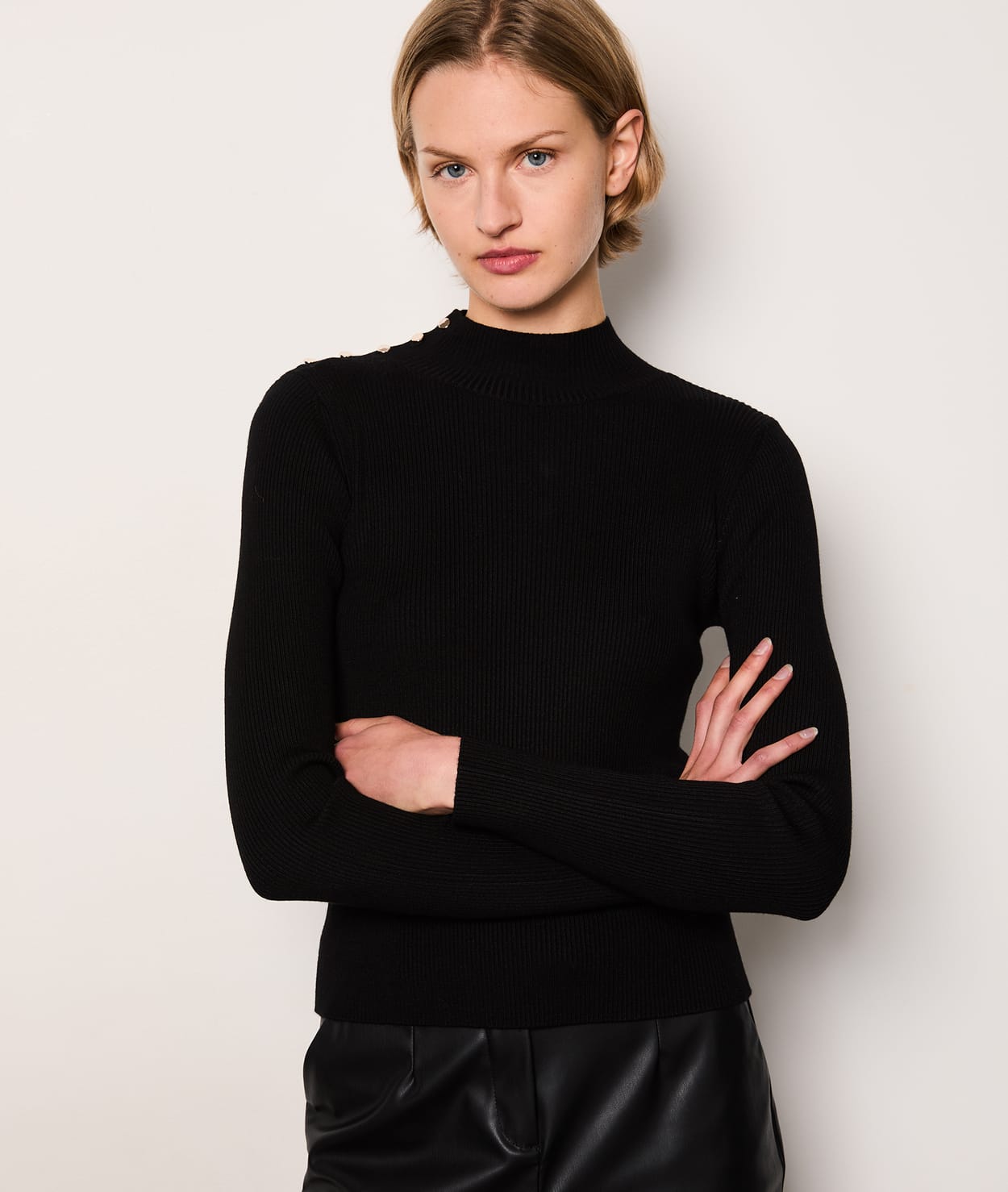 This long-sleeved sweater features a funnel neck and a delicately ribbed material. It perfectly hugs the curves of the s...