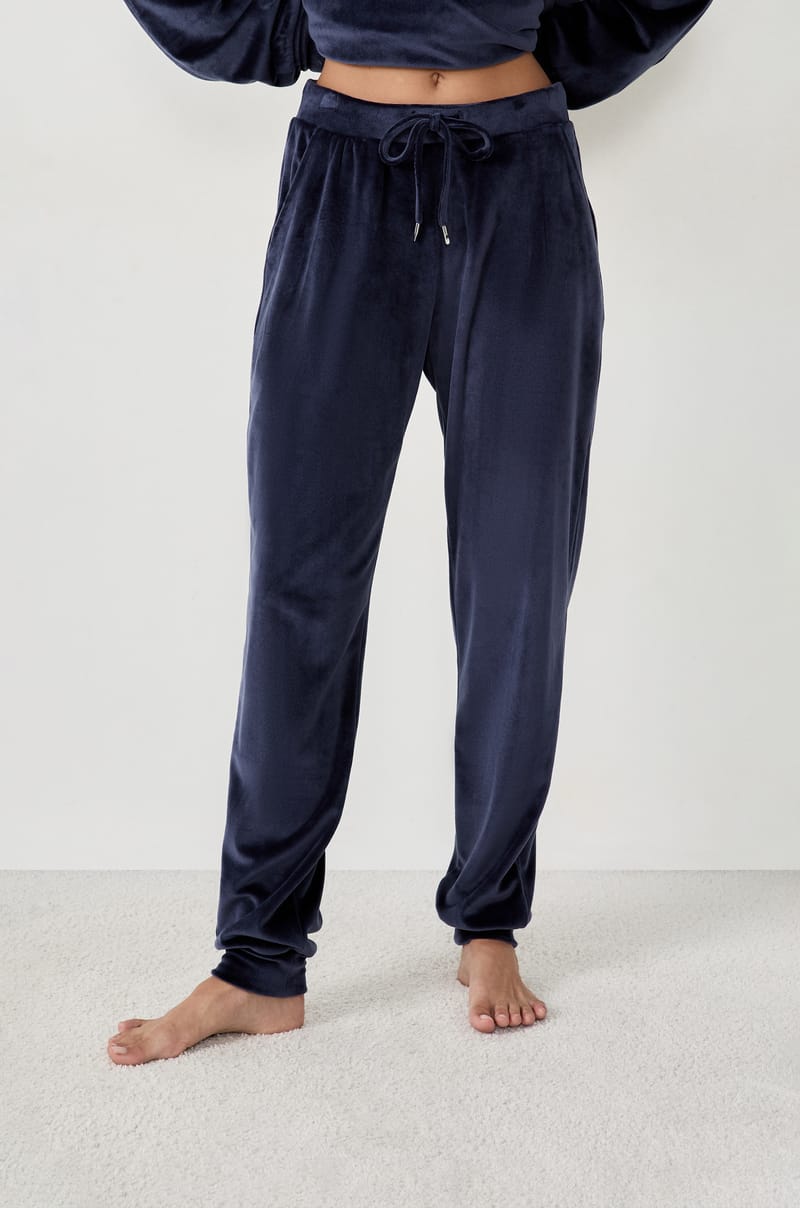 Idéal pour un style loungewear, ce pantalon de pyjama opte pour une coupe large. Son effet velours et sa taille à nouer ...