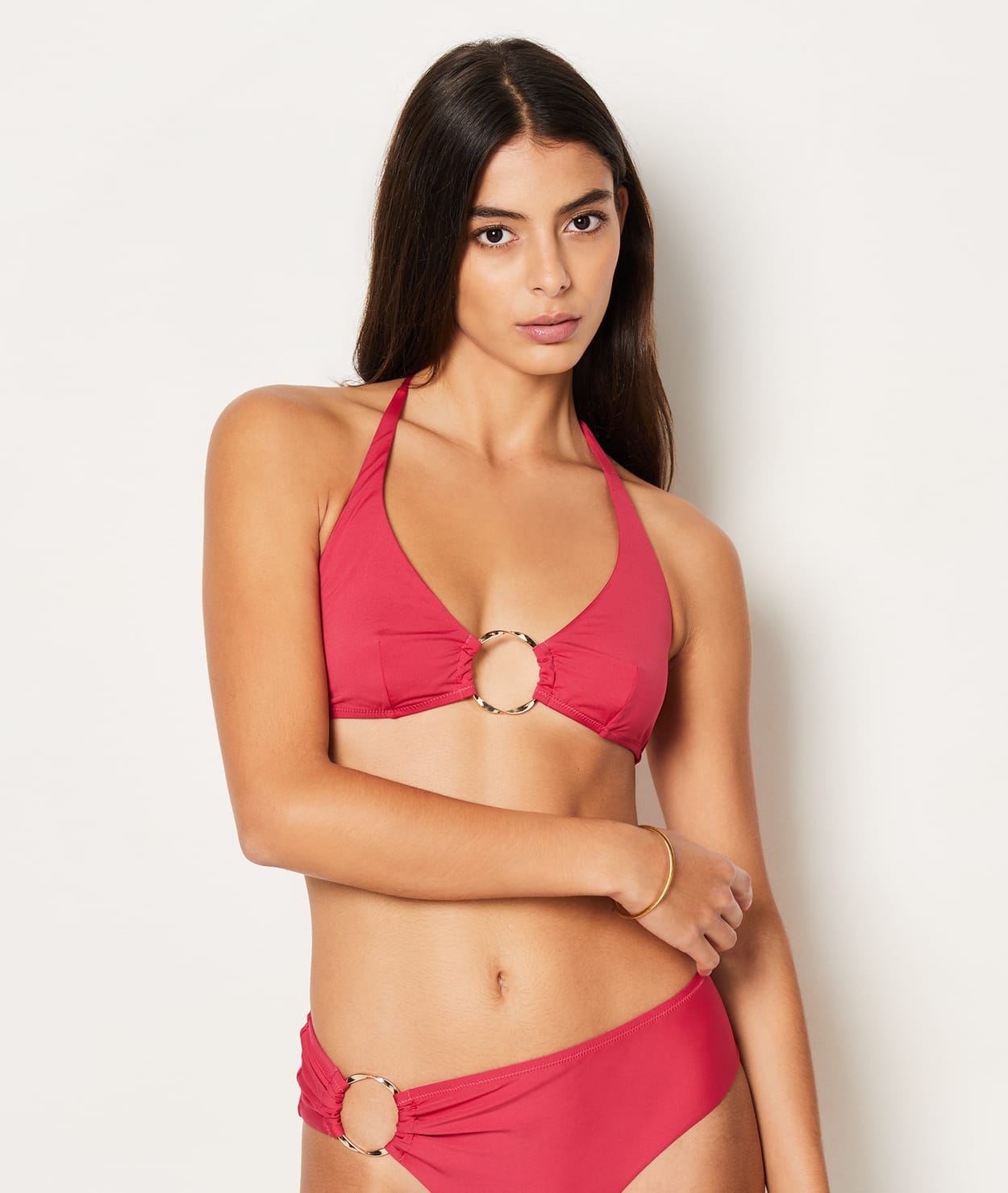 Adorned with a metal ring, this triangle bikini top promises an ultra-trendy beach look. Add the matching bottoms....
