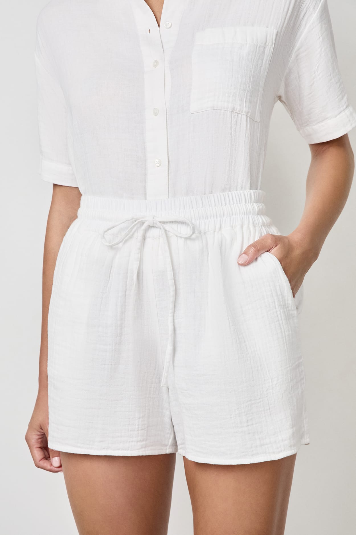 A versatile piece, these cotton shorts are ideal for warm days. They feature a flared cut, with two front pockets, and drawstrings for optimal adjustment at the waist.