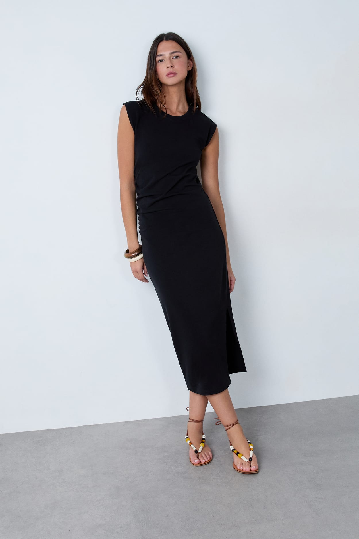 Featuring side gathers and a fitted cut, this dress elegantly hugs the silhouette. Spring feels gentle thanks to its cot...