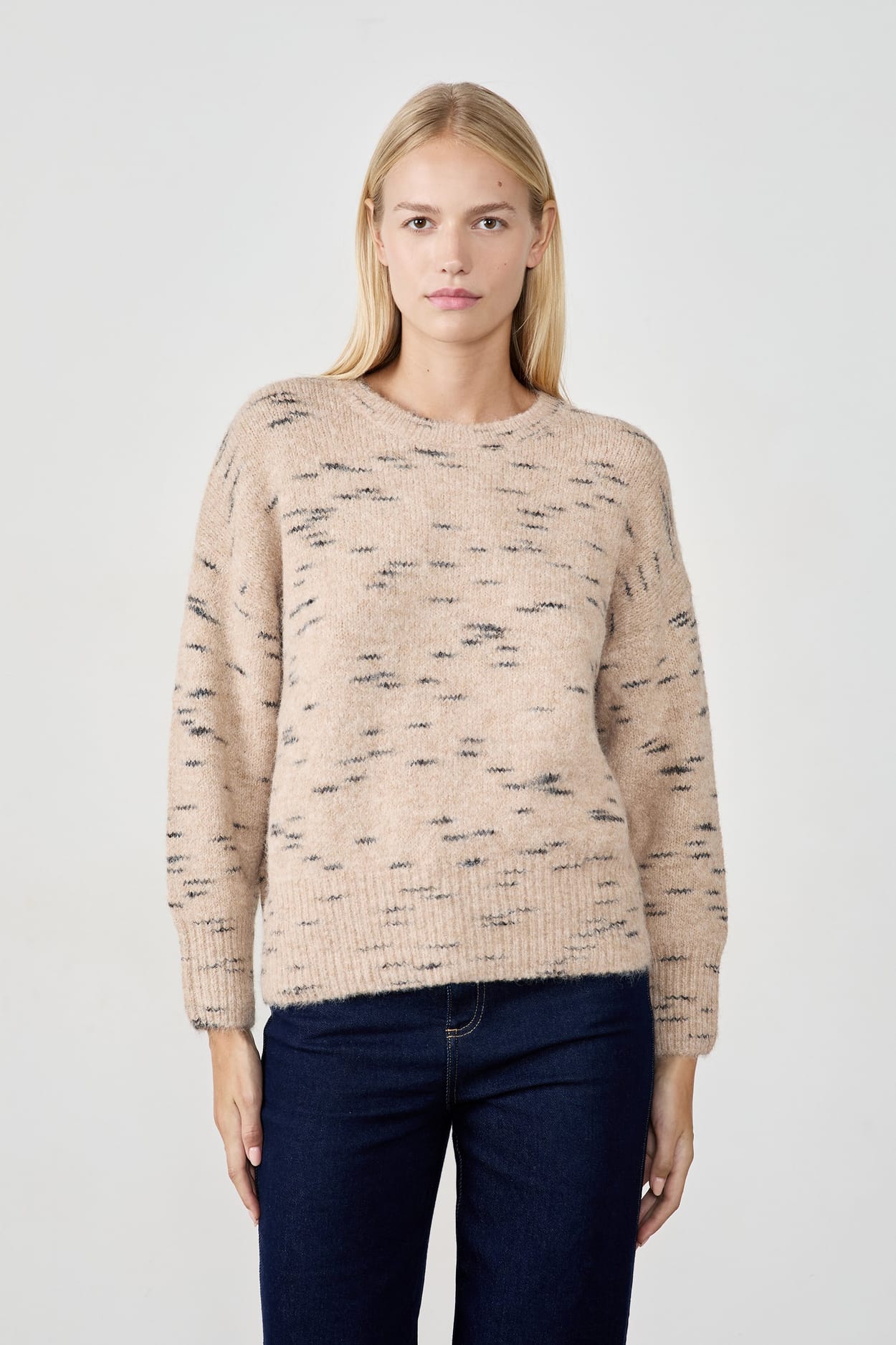 A timeless wardrobe basic, this long-sleeved sweater is crafted in knit. It's updated with a spotted pattern....