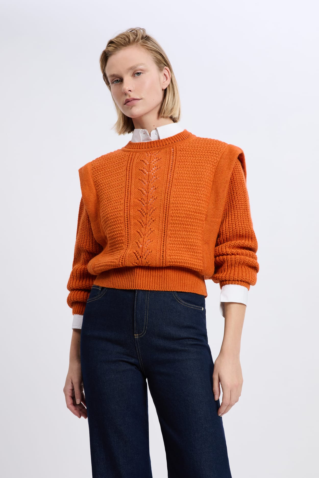 A wardrobe essential, this knitted sweater is enhanced with patterns. It features long sleeves and a round neck....