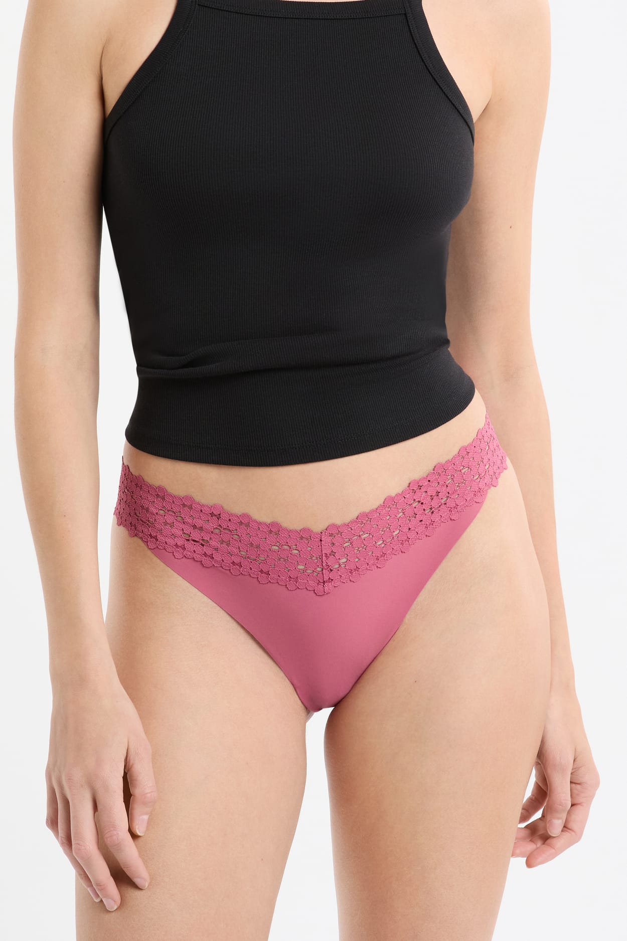 With its low coverage shape, the tanga gives a lifted effect to all bottom shapes. We love this version delicately trimm...