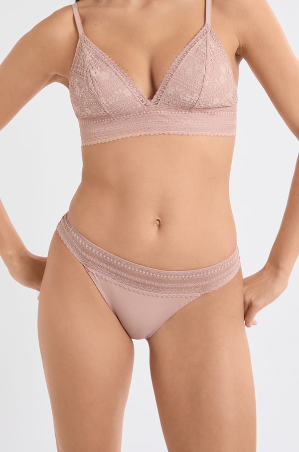 V-shape Hipster in Microfiber and Lace;${refinementColor}