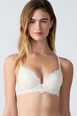 Thanks to its discreet cups, the neckline gains a size and displays a nice rounded shape in this push-up bra made with our signature iridescent lace, Success.