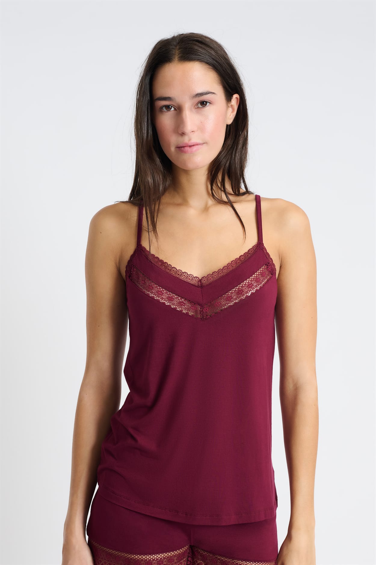 Elegance and delicacy... This camisole with thin straps reveals a neckline adorned with delicate lace. With its fitted ...