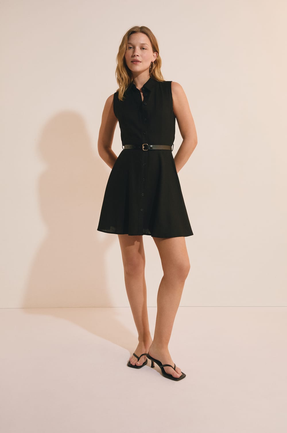 Robe courte sans manches avec lin
