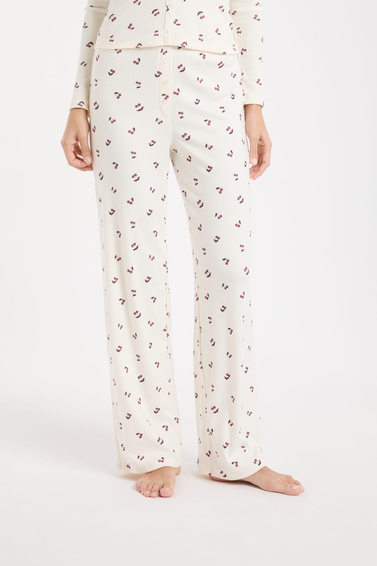 Soft and comfortable, these pyjama trousers feature a cherry print. They have a button placket and a fluid cut....