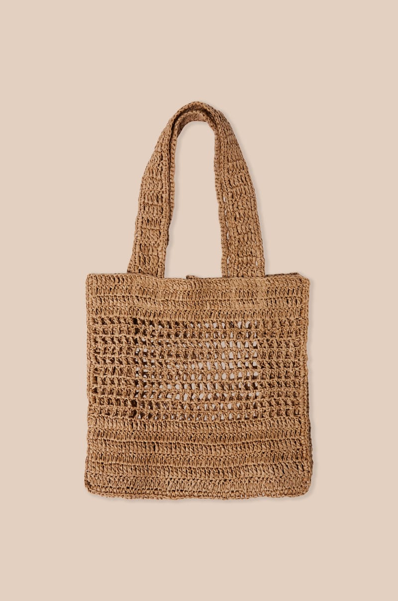 Ce sac en crochet est en texture ajourée, idéale pour la saison estivale. Sa forme souple et ses larges anses offrent une allure décontractée.
