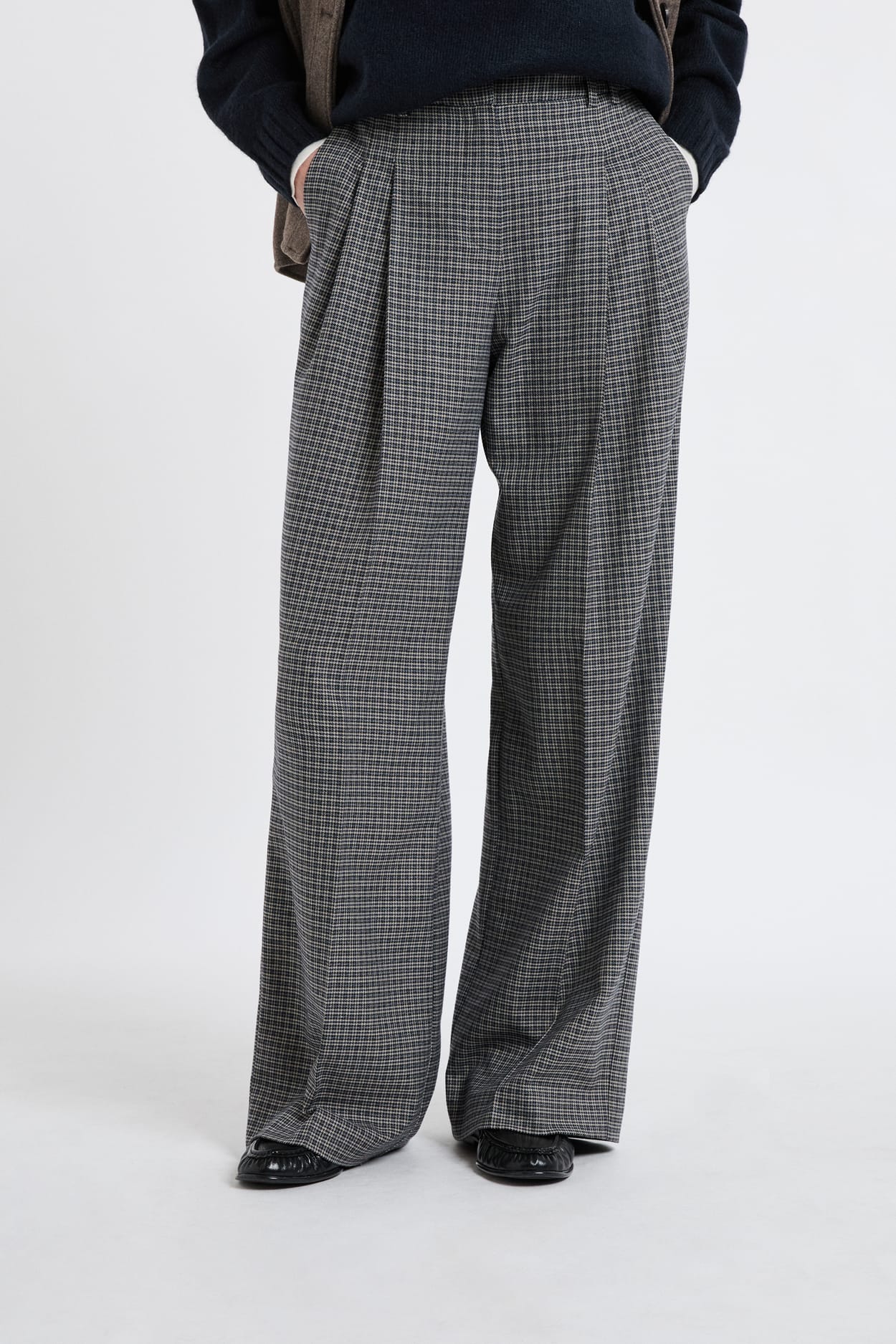 Wide-Leg Checked Trousers