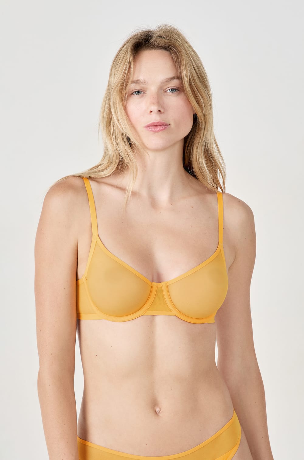 Ce soutien-gorge offre une sensation de liberté et de légèreté avec sa forme corbeille. Muni d'armatures pour un maintien léger, il opte pour un jeu de transparence résolument sensuel et féminin.