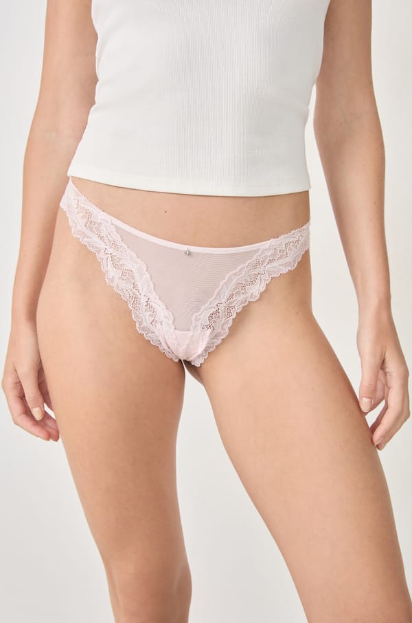V-shape microfibre and lace tanga;${refinementColor}