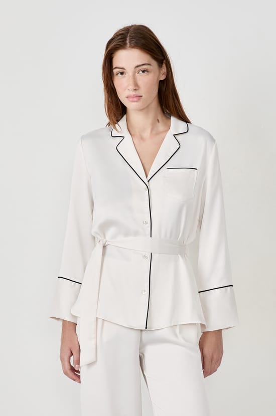 Satin Pyjama Shirt with Tie;${refinementColor}