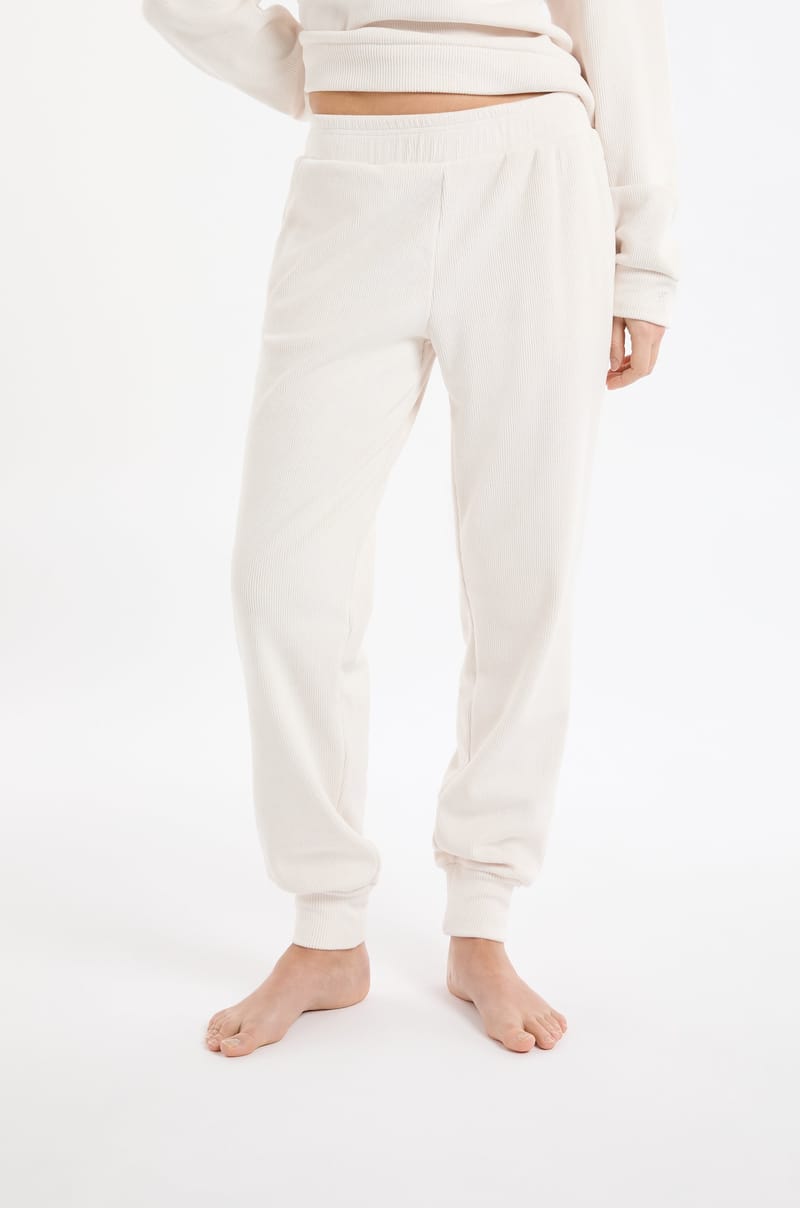 Ce pantalon coupe jogging s'habille d'un effet côtelé. Il est muni d'une taille élastique et assure un ma...