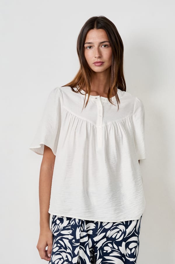 Short-sleeved cotton shirt with floral print;${refinementColor}