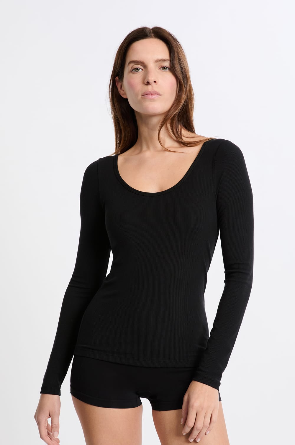 Le nouvel indispensable du vestiaire se dévoile. Le t-shirt à brassière intégrée, un 2 en 1 à la croisée entre lingerie et prêt-à-porter, qui offre un effet no bra et un confort ultime. Muni de coques fines discrètes, il maintient et galbe tout en douceur.