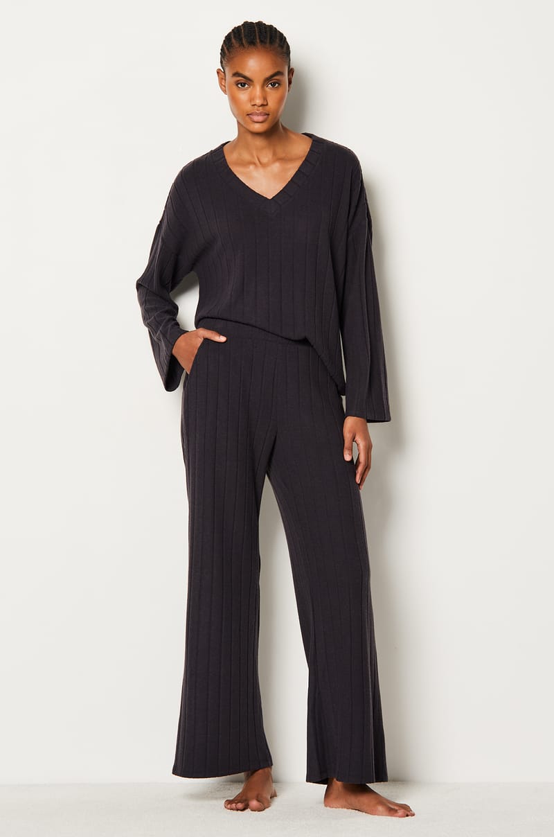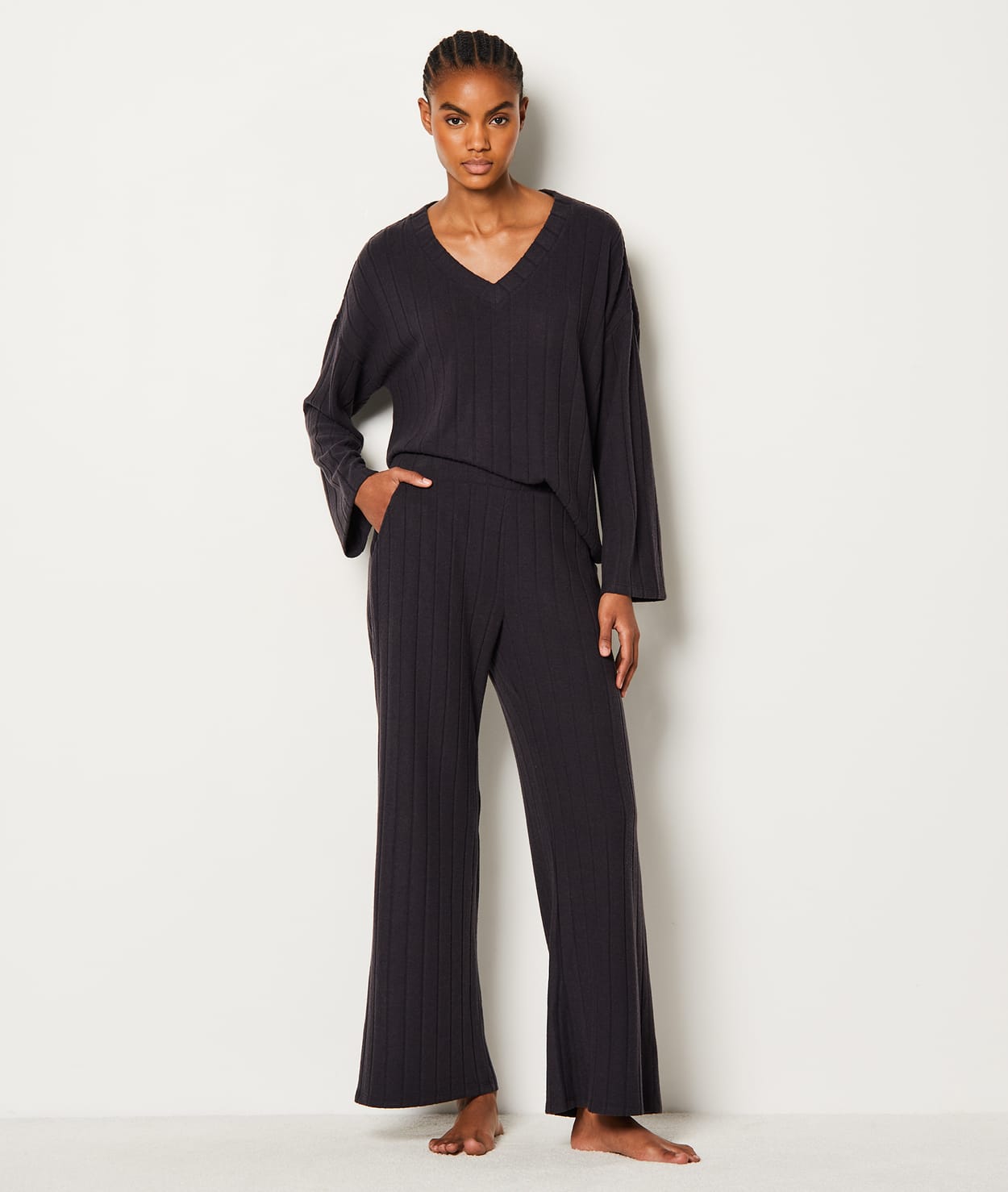 Made from a delicately ribbed material, these wide-leg pyjama bottoms feature an elastic waistband, perfect for everyday comfort.