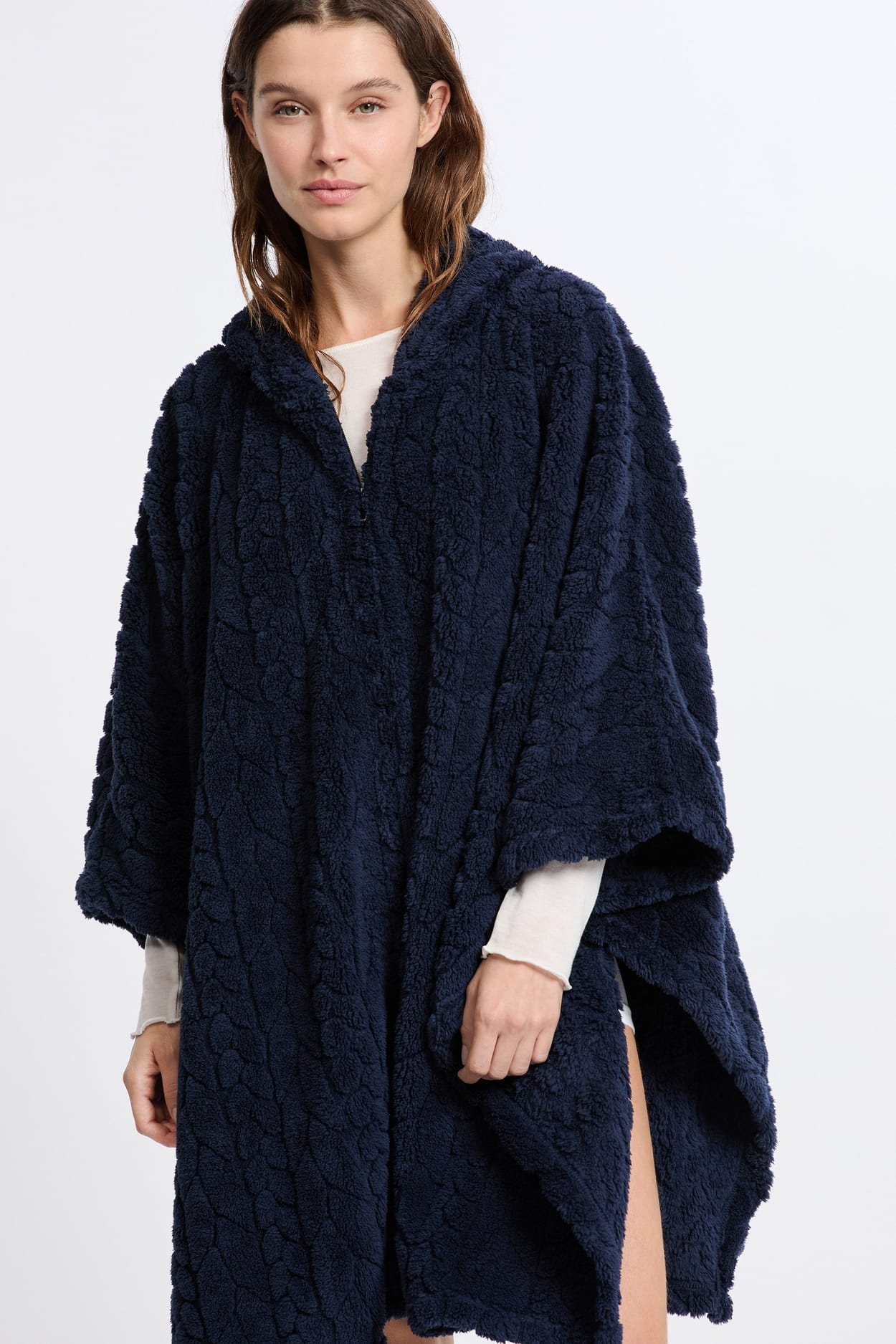 Ultra doux et confortable, ce poncho se porte en superposition pour rester bien en chaud. Confectionné en fausse fourrure, il offre un effet tressé. Il est muni d'une capuche et de manches 3/4.